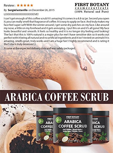 100% Natural Arabica Coffee Scrub 12 oz. Organic coffee, coconut and shea butter: Buy with complete confidence that if you are not completely satisfied with the product, we will refund your entire purchase...