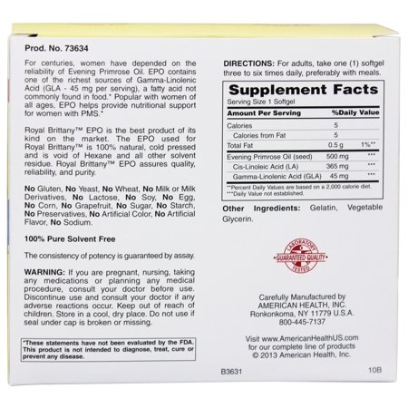 Orignal From: American Health Royal Brittany Evening Primrose Oil - 500mg - 2 bottles of 200 softgels