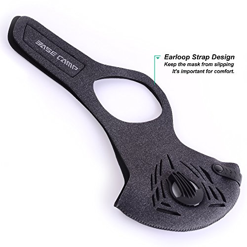 Orignal From: BASE CAMP fitness dust mask ear-mounted adjustable Velcro and activated carbon filter sports training house cleaning gardening (gray)