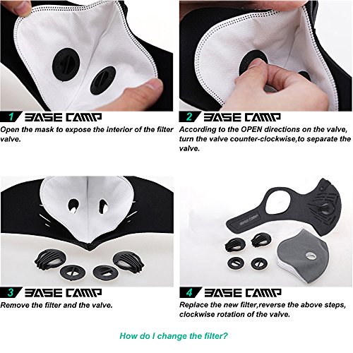 BaseCamp® Urban Activated Carbon Mask filters out 95% of exhaust gas, pollen, chemicals, smoke and other irritating dust.