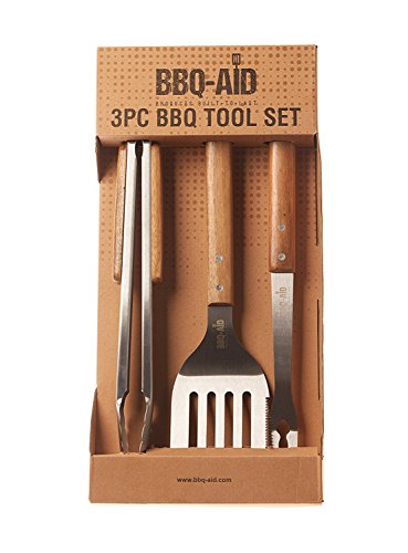 Orignal From: BBQ-Aid 3-piece grill set - clamp, scraper and fork utensils - heavy-duty stainless steel grill accessories and tools with hard wood handle, press