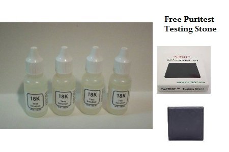 This set is a perfect gift for anyone who likes to buy/sale gold! Or maybe it's a perfect complement to your own gold trading. These test solutions are used by professionals and enthusiasts and are a reliable way to assess the purity of gold! This process is simple (packaging instructions included in the shipment), and the kit is very small, easy to store in the home or briefcase on the go. Includes Free Puritest Test Stone Including This Kit Includes Four (4) Bottles of 18K Gold Test Acid Solution, One (1) Stone Test Surface and Instructions