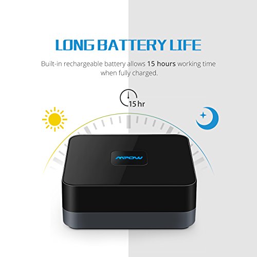 Mpow Bluetooth Receiver with advanced Bluetooth 4.1 technology and built-in battery that allows you to fully enjoy high-quality music and sound stereo through headphones, home speakers or cars System wireless.
