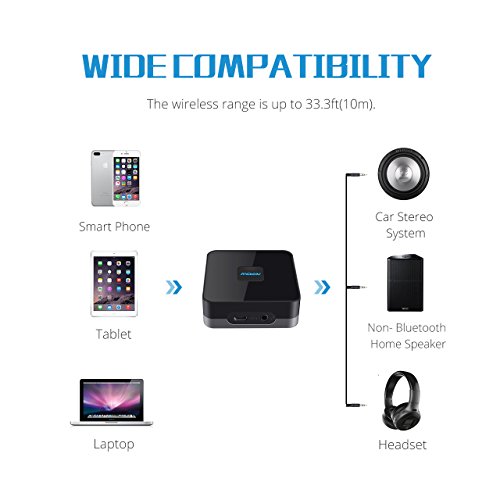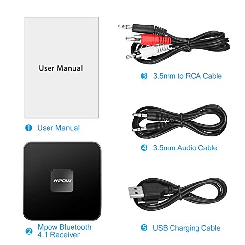 Orignal From: Mpow Bluetooth Receiver Home Music Streaming System, Wireless Audio Adapter, Bluetooth 4.1 Music Adapter, Hi-Fi Stereo and Up to 15 Hours Work Time Battery, Black