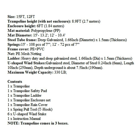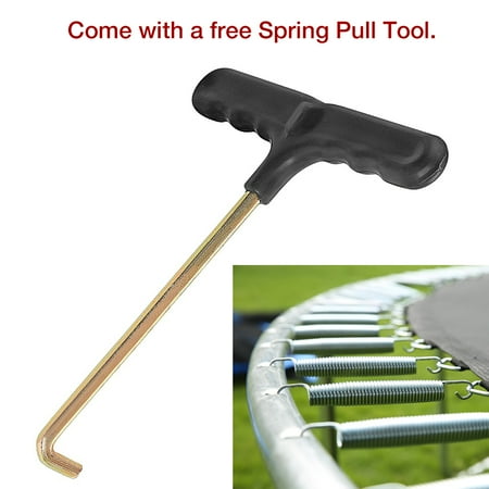 equipped with all the necessary accessories: 6 U-shaped wind piles can strengthen the trampoline, especially in bad weather conditions. Come with spring pull tools. With nets, mats, mats, springs and ladders