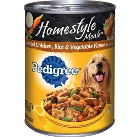 Orignal From: Pedigree Homestyle Meals Pork Ribs and Roasted Chicken, Rice and Vegetable Flavor Varieties Packaged Wet Dog Food, 13.2 oz, 12 Boxes