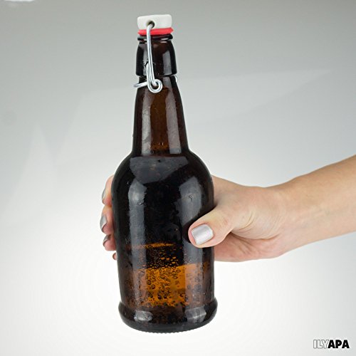 Heavy Duty Glass - Our 16 oz beer bottle is made of durable thick amber glass. Very suitable for home-made, Kombucha, whiskey bottling, soda, cider, sour milk, vinegar, oil, vanilla extract, etc.KEEPS CONTENT FRESH - The flip design is simple and easy to use, ensuring the enclosed interior space
