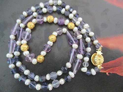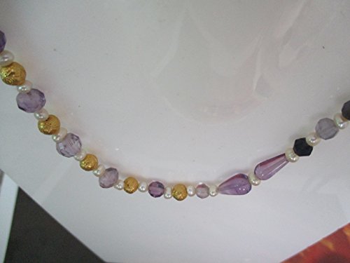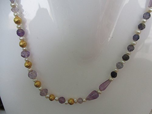 Orignal From: Amethyst, cordierite, pearl and gold beaded face 25 cm (end to end) Aura fusion.