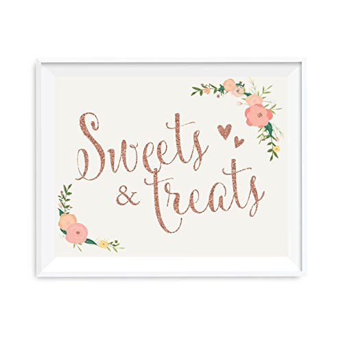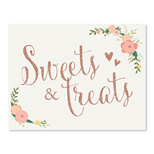 Orignal From: Andaz News Wedding Party Sign, Artificial Rose Golden Glitter and Floral, 8.5x11 Inch, Sweets and Snacks, 1 Pack, Color Decoration, Dessert Table Card