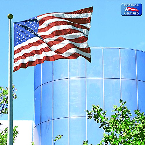 This American flag, stitched stripes and embroidered stars are very durable all-weather flags. This American flag is made of light-weight polyester fiber and is designed for ventilation to ease pressure on the flag state. This is the best outdoor flag for commercial or institutional use, high wind speed areas or daily use. It comes with a year of ColorFast warranty. Like all our American flags, it is made in the United States.