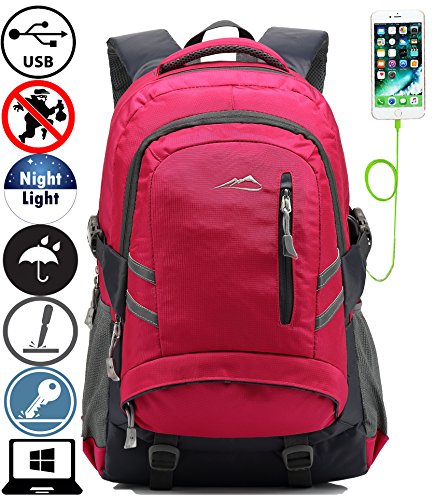 Orignal From: Backpack Schoolbag for School Student Travel Business with USB Charging Port Waterproof Suitable for Laptop Up to 15.6 inches Burglar Nightlight Reflective (Pink)