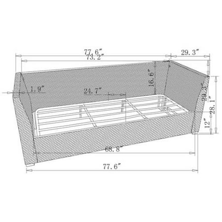 - Sofa size 29" long x 77.5" wide x 28" Height (73.66 cm x 196.85 cm x 71.12 cm)