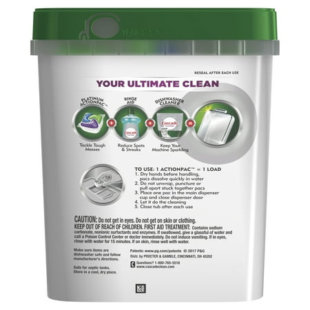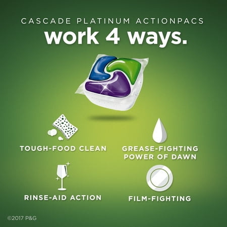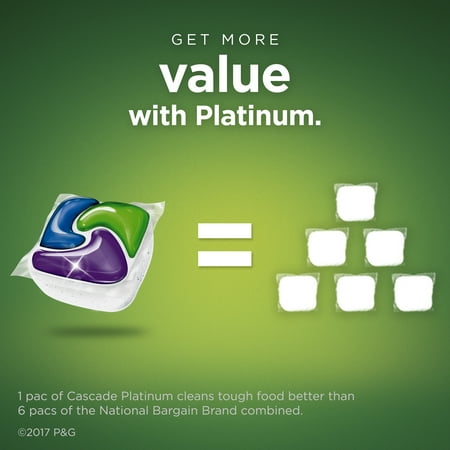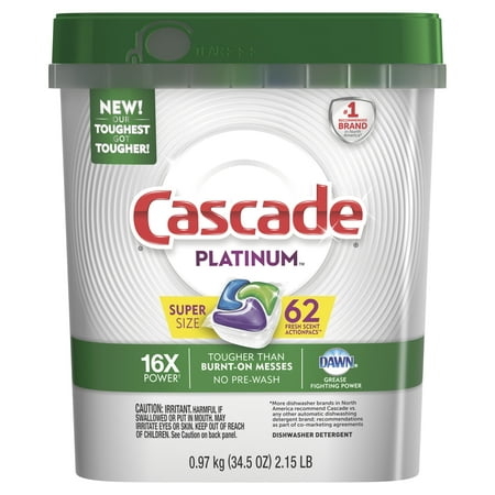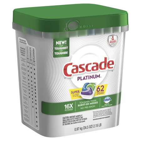 Orignal From: Cascade Platinum ActionPacs Dishwashing Detergent, Fresh, 62 Sticks