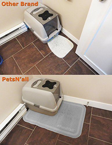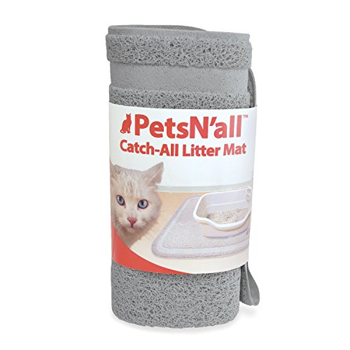 PetsN'all Catch-All garbage mat captures and catches cat litter, throws cat litter in the bin, and falls off the carpet and leaves the ground. The mat is soft to the cat's paw and has small dents to grab the trash, and an external channel is added around the mat to catch any false litter that might try to escape. Durable, it prevents slippage. Flexible is suitable for close spaces such as closets and small bathrooms. Made of PVC, it is 100% free from harmful elements such as phthalates and vinyl chloride. Like other litter mats, it can trap trash under carpet fibers, making cleaning difficult and causing mold and mildew. PetsN's all Litterbox mats are easy to clean, and other mats do not have many options. PetsN'all Catch-All litter mats can be cleaned, hand-held, or attached to dust, and pour clean trash into the box or wipe it with a damp sponge or cloth. The material is a closed pore designed to prevent moisture absorption, prevent the growth of mold and the capture of odors.