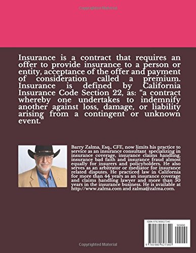 Insurance is a contract that requires insurance to an individual or entity, acceptance of an offer, and payment of a so-called premium. Article 22 of the California Insurance Act defines insurance as: "One party promises to indemnify the other party for losses, damages or liabilities arising from contingent or unknown events." Therefore, this is a special type of contract because it is limited Protect only from contingents or unknown events. Any loss must be accidental, accidental or unknown. Intentional behavior cannot be insured. This book explains what insurance is, how to get insurance, how to read and understand insurance, what to do when a loss occurs, and how to successfully submit and collect claims to protect the insured from all losses.
