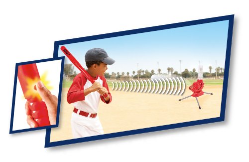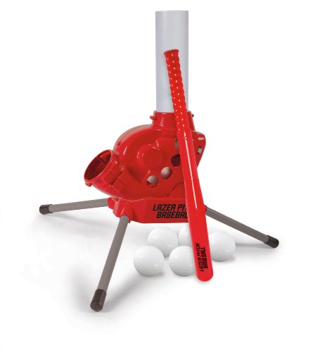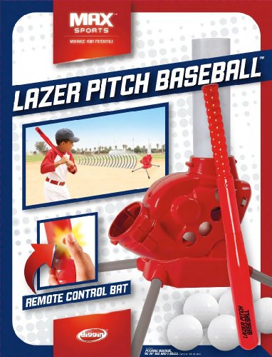Lazer Pitch baseball is the ultimate backyard fun. It is the only pitching machine that allows you to control the time of each course. Just press the button on the racket handle to activate the course. Lazer Pitch baseball includes a pitching machine, radio control 26 inch bats and 5 balls. Lazer Pitch baseball has an adjustable pitch angle, ranging from regular fastball to softball to beginners' 90-degree pop-up window. Lazer Pitch baseball pitches up to 25 feet. A red light will confirm that the course is coming. For children who want to use their own bats, the machine has an "auto" mode that shoots every 8 seconds. Designed for children over 5 years of age, the Lazer Pitch Baseball is a perfect pitching machine that teaches children the timing and skills to be a star on the baseball field. The device requires 4 "D" and 1 "9V" batteries. (Not included). The Lazer Pitch baseball includes a pitching machine, a 26-inch remote control club and 5 balls. The unique RC bat allows you to control the time of each course