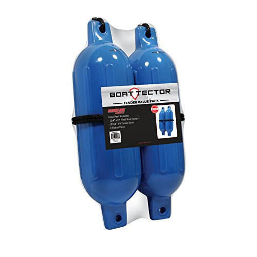 Protect your boat without leaving dents in your wallet. BoatTector's fenders provide excellent protection for the ship you are docking and withstand the impact of wind and waves, so your boat does not have to worry. The pack includes two 6" x 22" BoatTector fenders and two 3/8" x 5" fenders. Each fender is equipped with a needle valve that allows any sport ball pump to inflate the fender to provide the custom psi and molded holes you want to ensure fender life and strength. Includes two 6" x 22" BoatTector fenders and two 3/8" x 5" fender wires