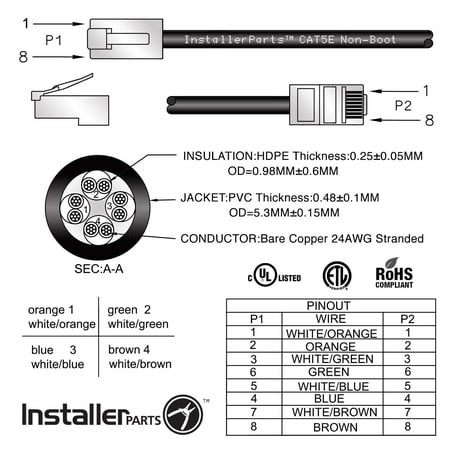 - Maximum compatibility: Meets Class 5E performance of TIA / EIA * T-568B standard wiring. UL/cUL listed. RoHS.