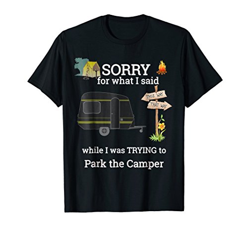 Men's and Women's RV camping shirts. This "I'm sorry, I said in the parking lot" shirt was a soldier who had to park the trailer before the camp started. The picture is worth a thousand words. This graphic T-shirt designed by Frocks and Finds shows everything. It's not easy to put the RV camper trailer in the narrow parking space of the campsite - this apologized T-shirt is for you. Search our brand name in this design to get more shirt colors