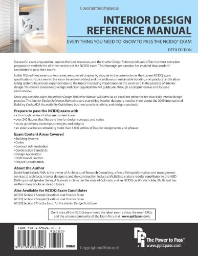 Interior Design Reference Manual (IDRM6) provides a complete assessment of all three departments of the NCIDQ® certification exam. The extensive coverage and clear organization of the book will guide you through a comprehensive and focused examination review.