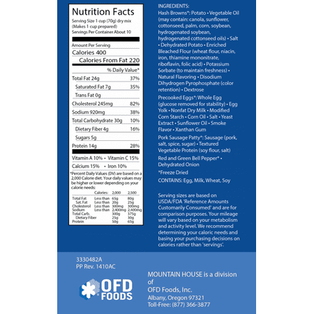 All teams made pancakes, delicious sausages, delicious vegetables and scrambled eggs into the legendary Mountain House breakfast frying pan. With the explosion and flavor and protein, it is no wonder that this is one of our most popular breakfast items, fueling explorers everywhere. There are four sizes to choose from to cater to your own unique adventure: #10 Yes - With this large breakfast frying pan, you can feed a group of hungry people or leave it all to yourself. Provide essential food for your emergency food supply...even if the emergency is that you are not eating a breakfast frying pan. All our breakfast frying pan options have one thing in common? They are easy to prepare. Just add hot water and you can enjoy delicious food anyway.