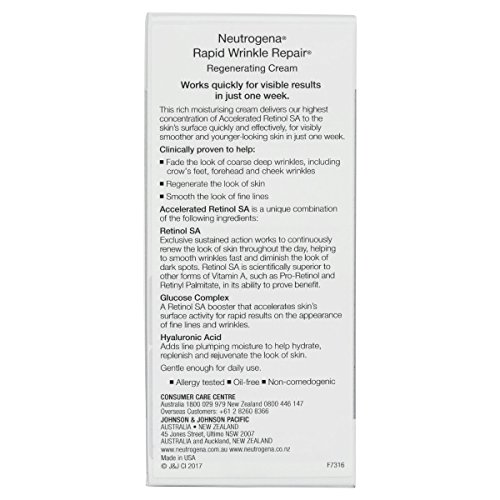Using Neutrogena fast wrinkle repair regenerative cream to reveal youthful skin in just one week. This anti-wrinkle cream contains a unique combination of ingredients that help regenerate, moisturize and smooth your skin. Formulas containing Retinol SA constantly update the appearance of the skin by helping to reduce the appearance of wrinkles and reduce the appearance of age spots. The Moisturizing Cream also contains a glucose complex, a retinol SA booster, which helps accelerate the skin's surface activity and thus quickly improve fine lines and wrinkles. This anti-wrinkle cream contains hyaluronic acid, which helps moisturize, replenish and restore the look of dull skin. Neutrogena Fast Wrinkle Repair is gentle enough for everyday use. The 1.7 oz cans of anti-wrinkle and moisturizing retinol cream are used day or night to show that younger looking skin looks younger in 1 week; Recommended Skin Type: Combination, Dry , Normal, mature