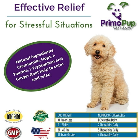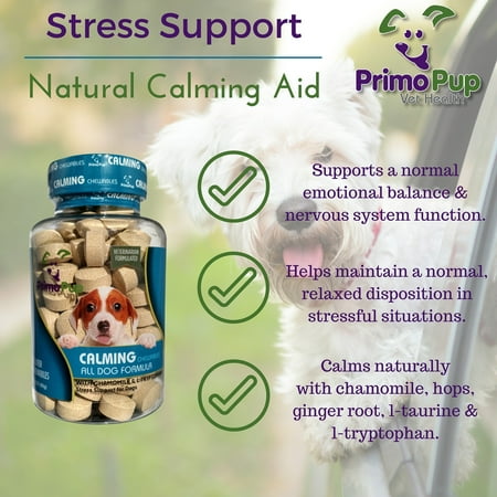 Orignal From: Primo Pup Veterinary Health - CALINGING CHEWABLES - Emphasizing support for chamomile and L-tryptophane dogs? Veterinary develops digestible and maximal absorption - 90 counts
