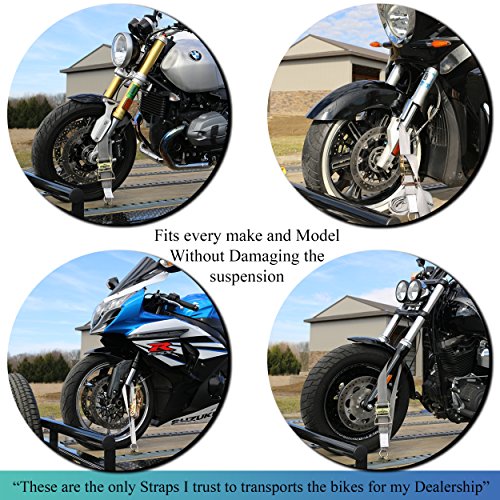 We searched a wide range and tried to find the best and toughest motorcycle tie belts to transport motorcycles of our motorcycle dealerships, which are also made here in the United States. In the past two years, we have used the same ties and have moved hundreds of motorcycles thousands of miles. The endless strapping method is exactly the same as that used by Harley-Davidson and Honda to bind a bicycle to a dealer.