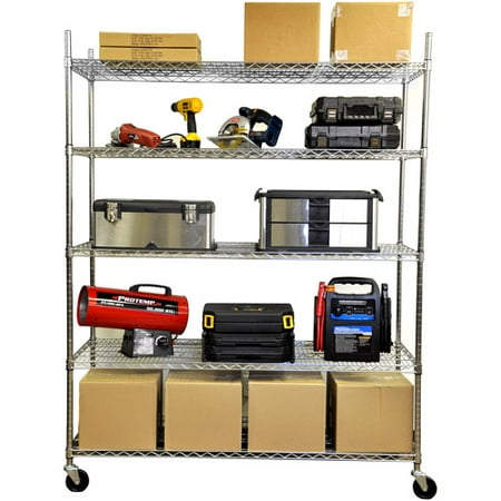 Reliable mobile storage is available when purchasing TRINITY heavy-duty 5-shelf rack units. With a functional and practical design, this 5-story NSF chrome chrome-plated rack with wheels can hold up to 600 pounds of weight per shelf and can meet your personal and professional needs. This heavy-duty wire shelf is ideally suited for use in industrial, home, garage or kitchen applications, where boxes, bedding, tools, etc. can be placed. Locking casters provide stability and mobility, making your large tools or storage items more organized and easy to use. The assembly does not require any tools, and a sliding sleeve locking system can be used to adjust the shelves in 1 inch increments. For business owners and family lovers, buying a TRINITY durable five-layer wire shelving unit is a practical matter.