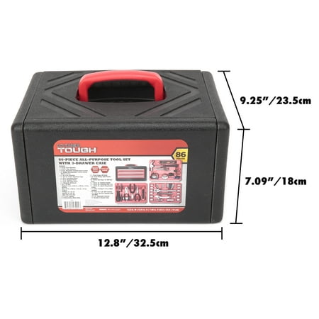 Super tough, 86-piece multi-purpose tool set with 3 drawers