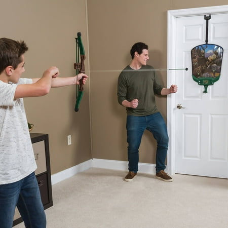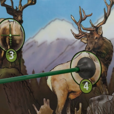 - Over-the-door bow target feature full-color deer, moose and bear image
